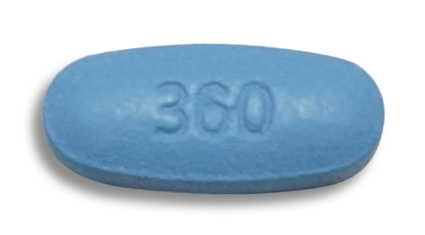 | Farbstoffe 90 mg: E171, E132 / 180 mg: E171, E132 / 360 mg: E171, E132, E172 |